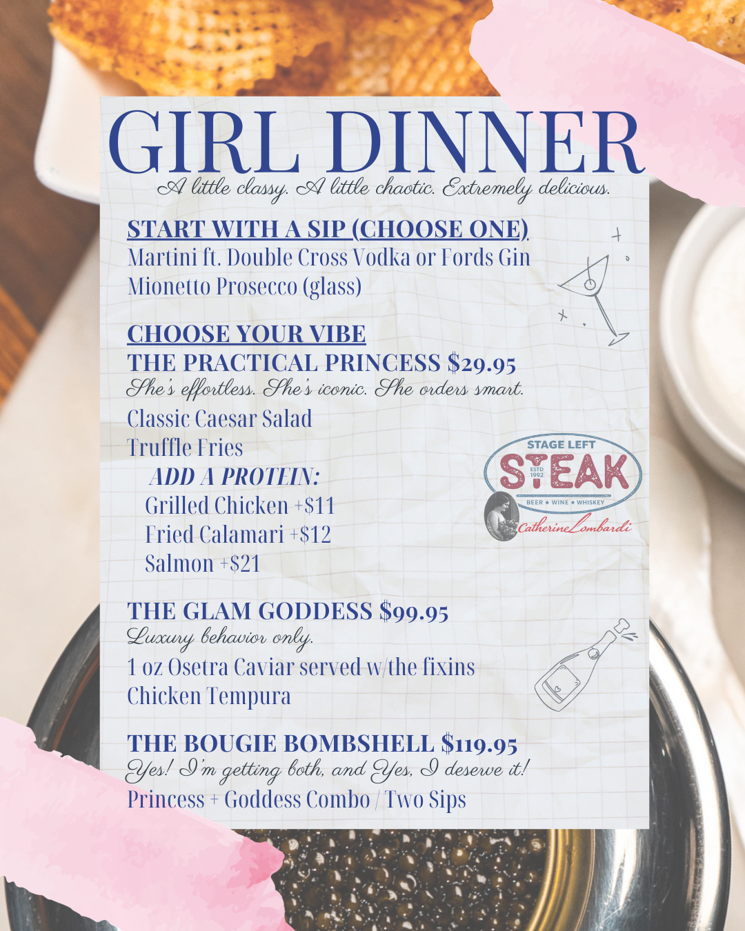 • And for the glam girls? Osetra caviar with all the fixin’s